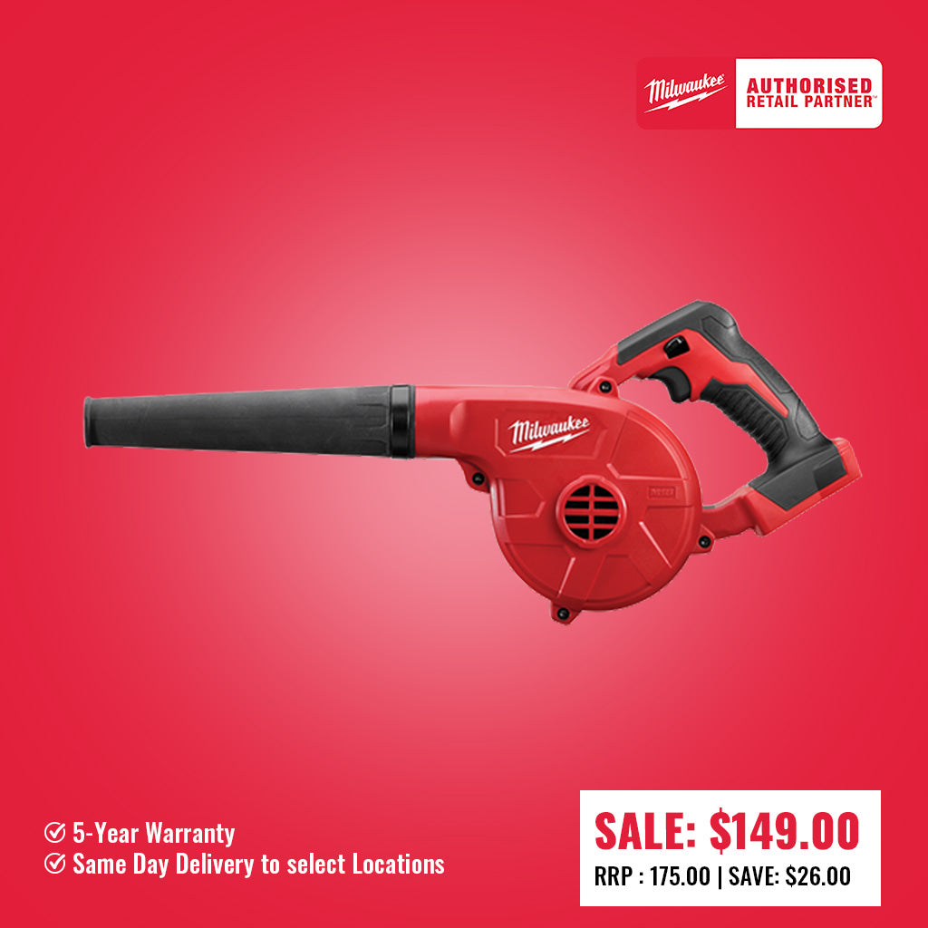 The M18™ Compact Blower delivers fast jobsite cleanup for maximum productivity. The M18BBL offers optimal power to size ratio. The M18™ Compact Blower has power control that includes a 3-speed electronic switch, lock-on and a variable speed trigger which allows for versatile clearing power. The Compact Blower moves air at 257 kph and 2.8 m3/min to keep users productive. Featuring a shock-absorbing polymer body and a crush-resistant nozzle the M18™ Compact Blower delivers jobsite durability. Included is a 230 mm nozzle extension to clear dust and debris easily from the ground, overhead or tight spaces. The M18BBL also comes with a universal inflator/deflator attachment suitable for most inflatable products, and the blower works with all M18™ REDLITHIUM™ Batteries.